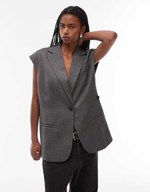 Topshop Blazer sans manches à chevrons Gris | ASOS