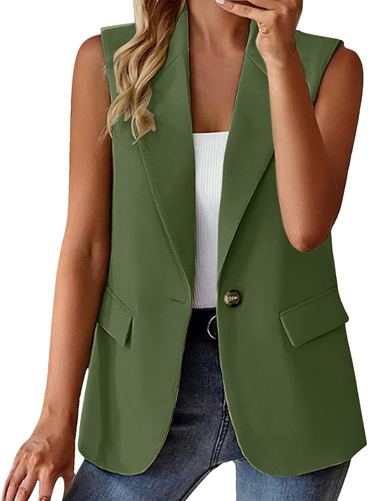 Blazer Long Femme Grande Taille Veste extérieure sans Manches pour Femmes, Couleur Unie, Manteau de Finition Avant, Cardigan à décontracté Manteau …