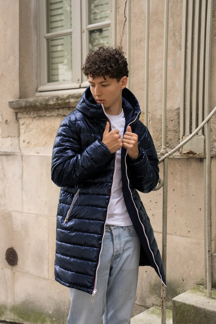 Laura Jo Doudoune HOMME longue imperméable et réversible matelassé bleu marine