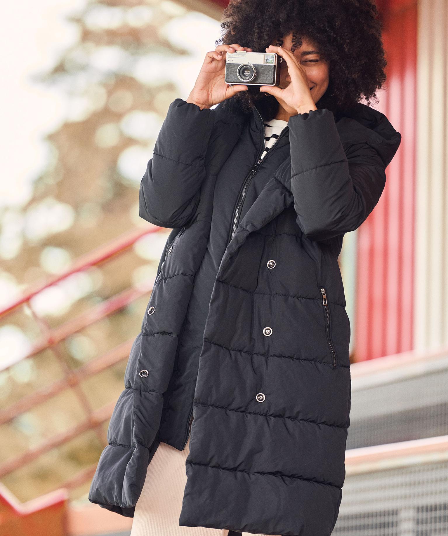 Doudoune longue à capuche femme noir | GEMO
