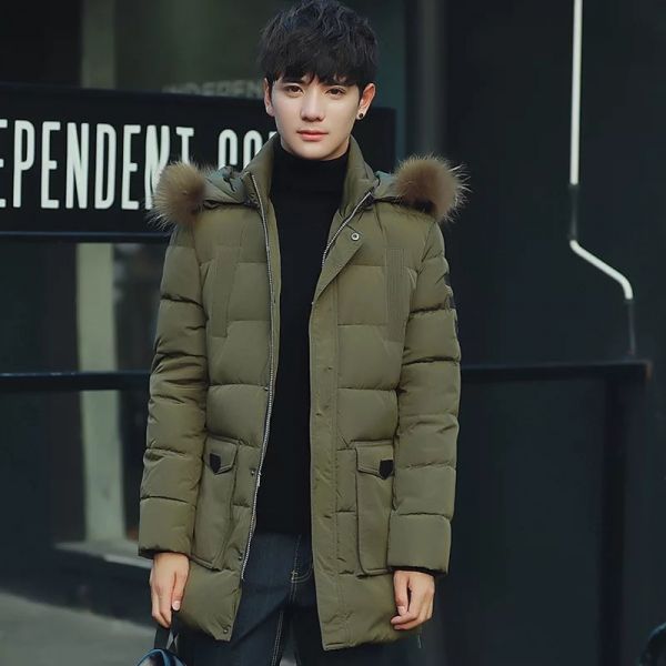 Doudoune mi longue homme avec capuche bordée fourrure amovible