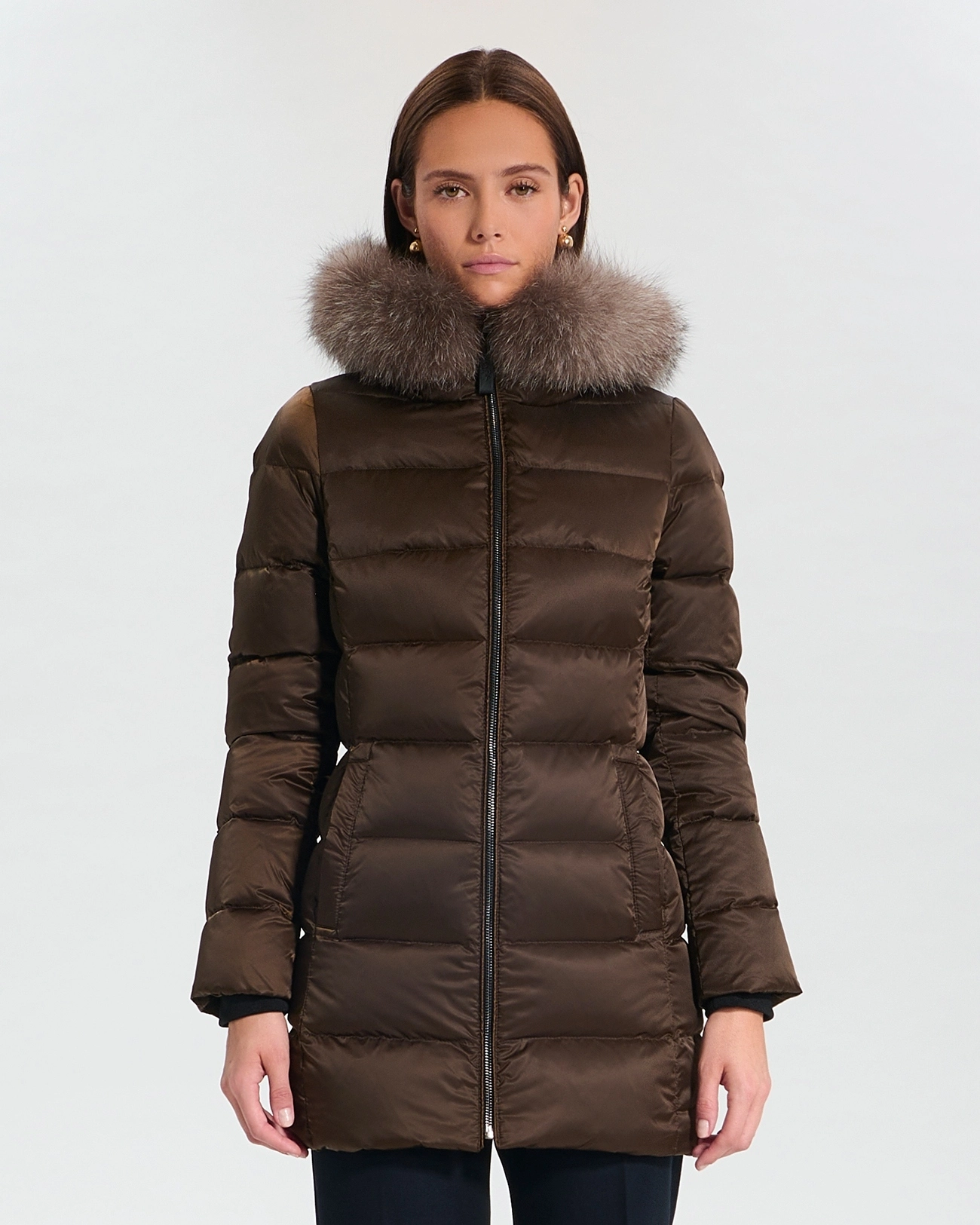 Doudoune Dalya Doudoune mi longue à fourrure chocolat | ZAPA