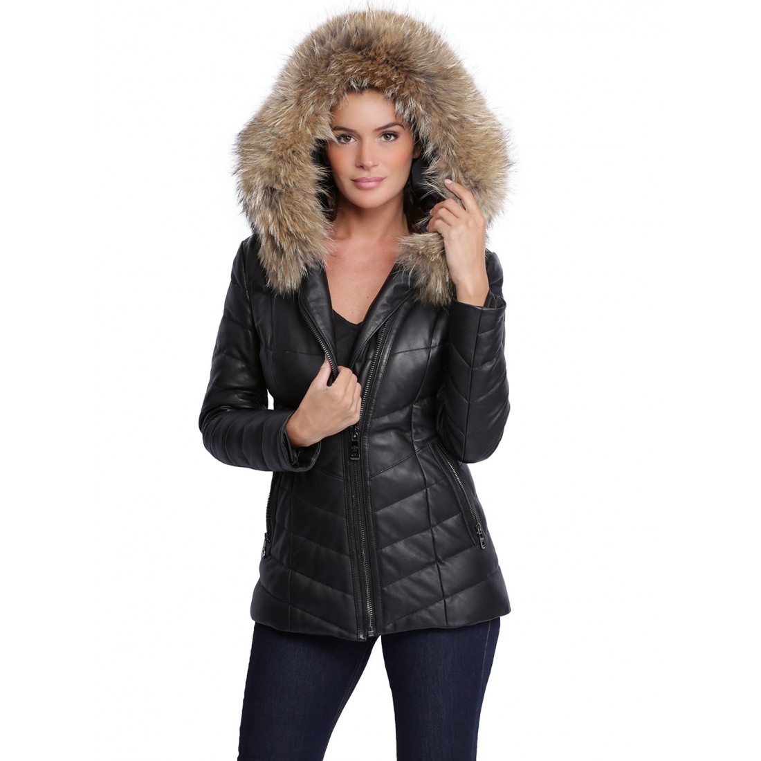 Doudoune à capuche en fourrure pour femme Giovanni Niny noir