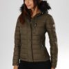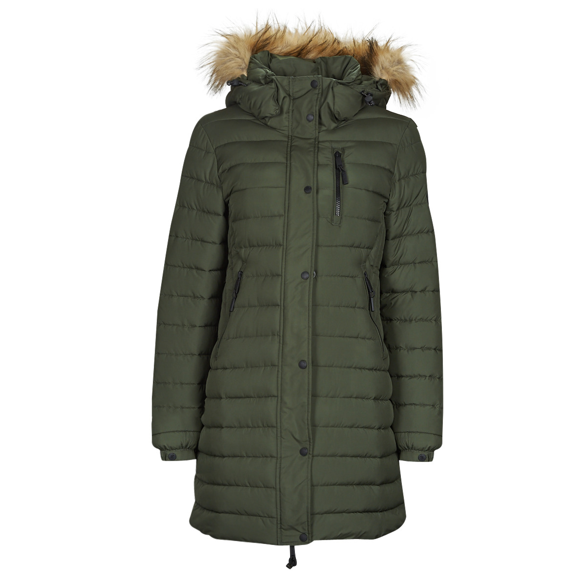 Superdry FUJI HOODED MID LENGTH PUFFER Kaki Livraison Gratuite | Spartoo ! Vêtements Doudounes Femme 112,50 €