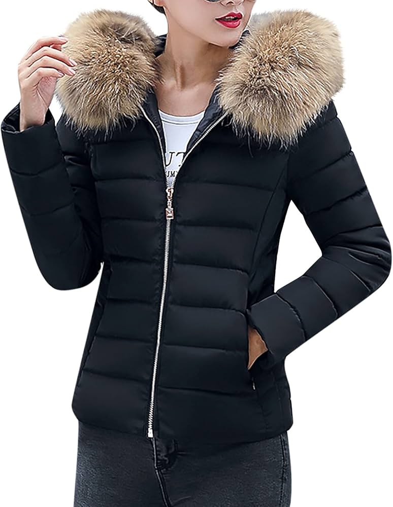 Hood Jacket Blouson Femme Doudoune Cloe à Manches Longues Femme Doudoune cintrée Femme à Capuche & Fausse Fourrure Veste Manteau d’hiver Jacket Court …