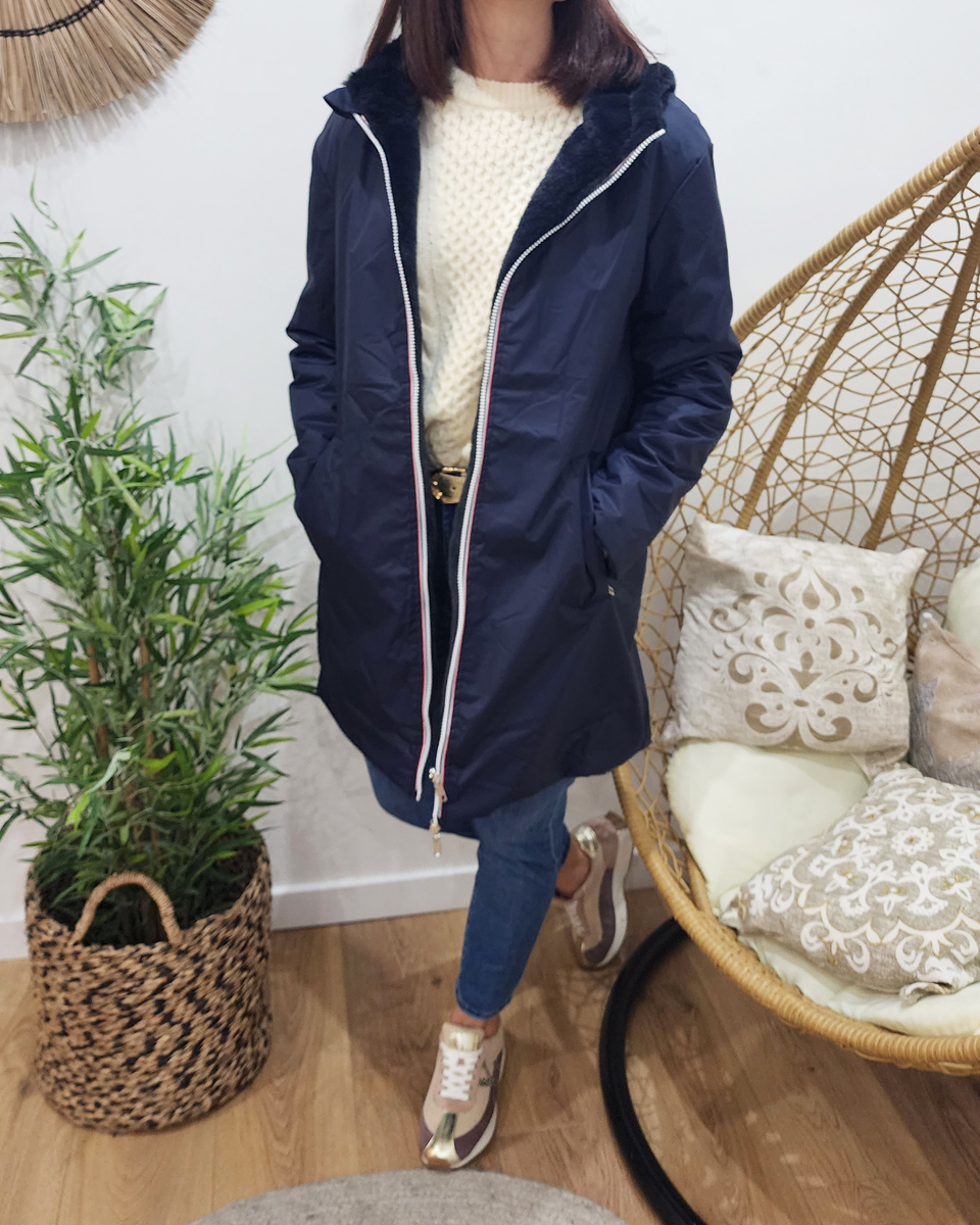Parka femme bleu marine réversible fausse fourrure Armanda 24707