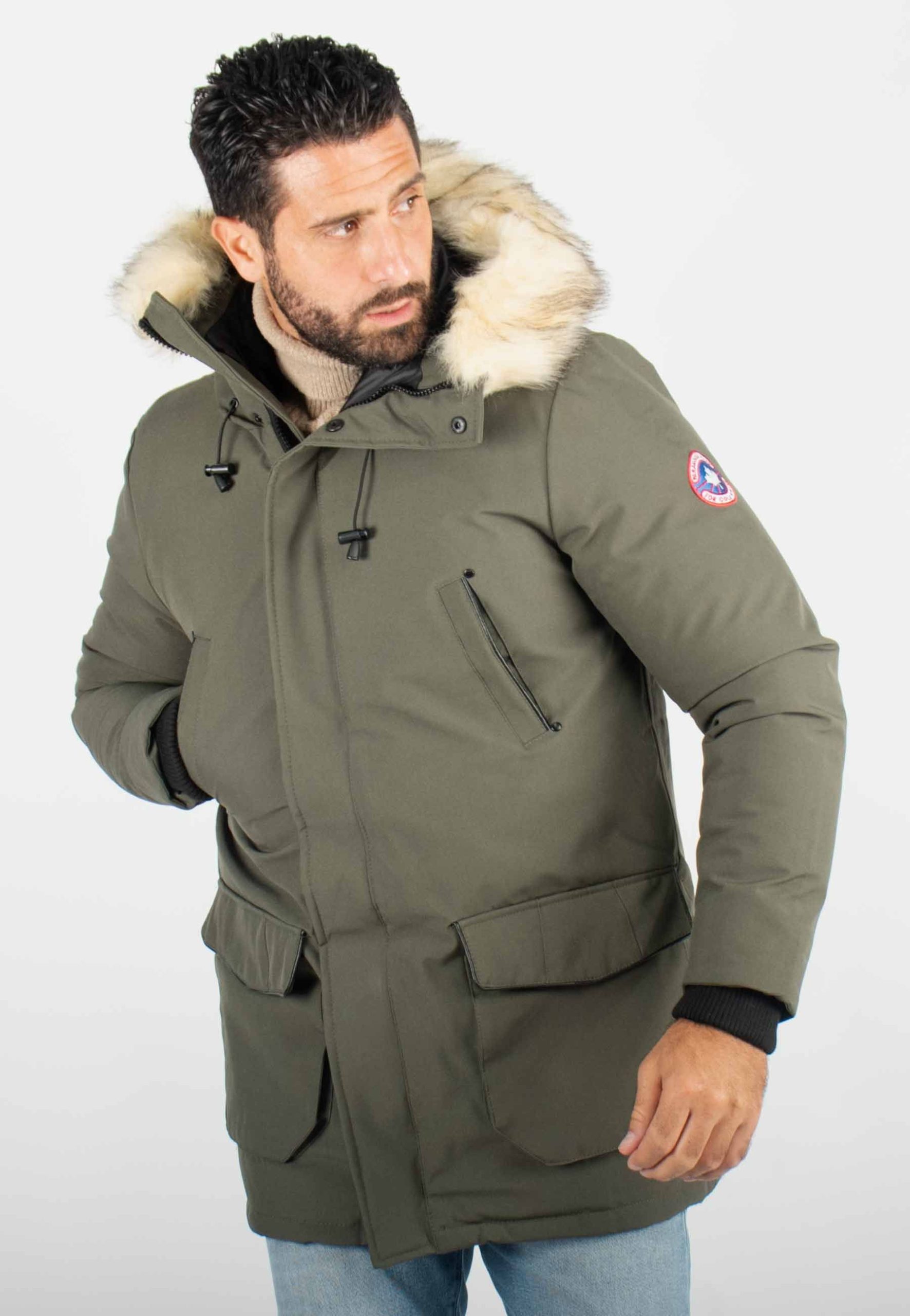 Parka Homme Hiver Vert Kaki avec Capuche Fourrée – Protection Optimale Contre le Froid